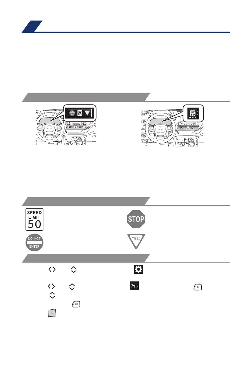 ” switches and select the “Road Sign Assist on/off” setting function