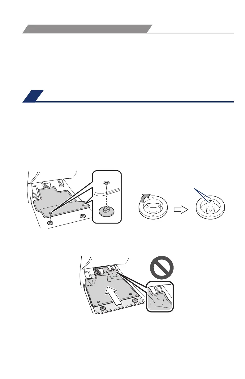 • Use only one floor mat at a time, using the retaining hooks to keep the mat in