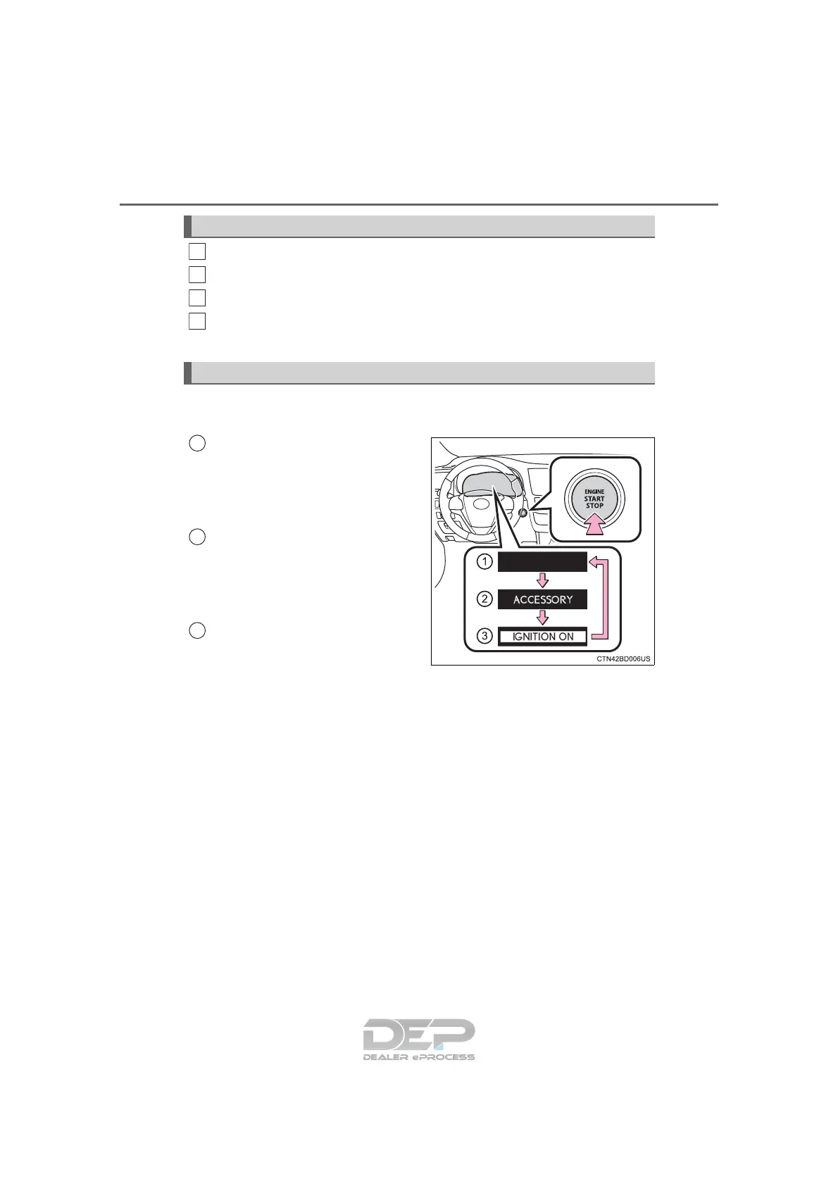 Release the brake pedal and check that “ACCESSORY” or “IGNI-