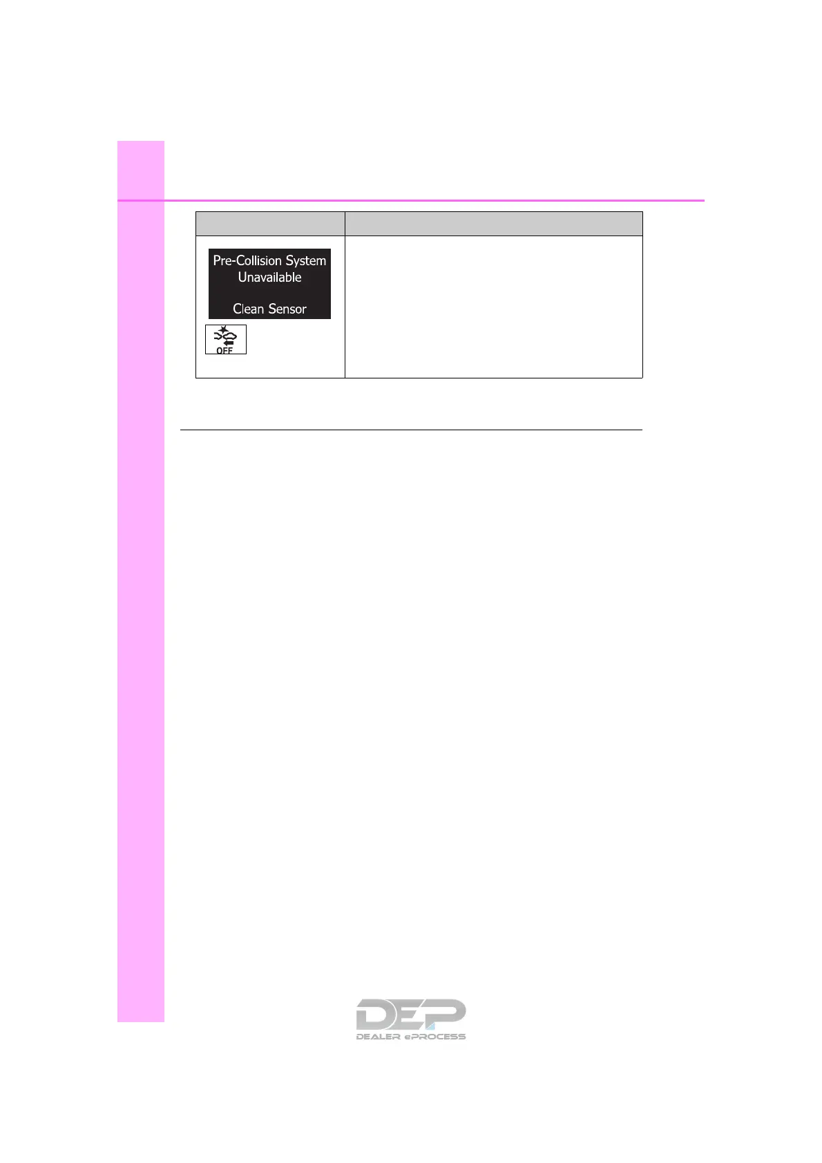 Indicates that the pre-collision system sensor is