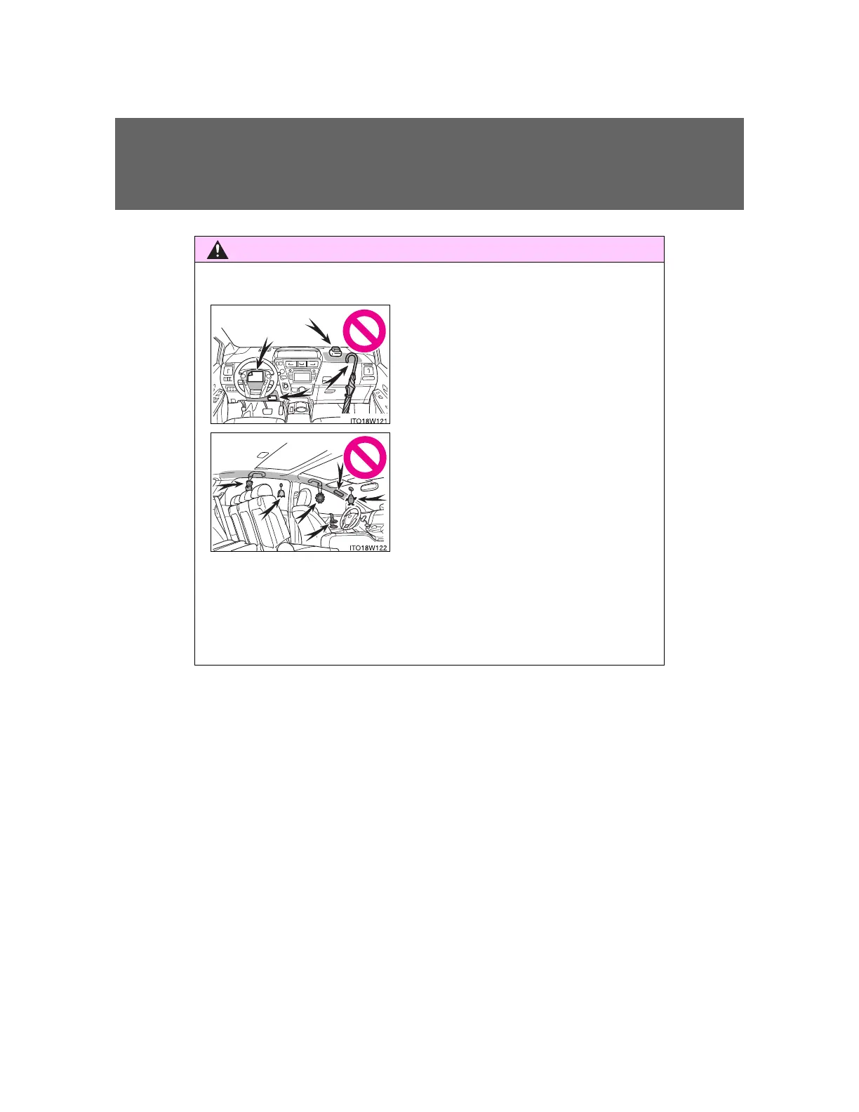 Do not attach anything to areas such as