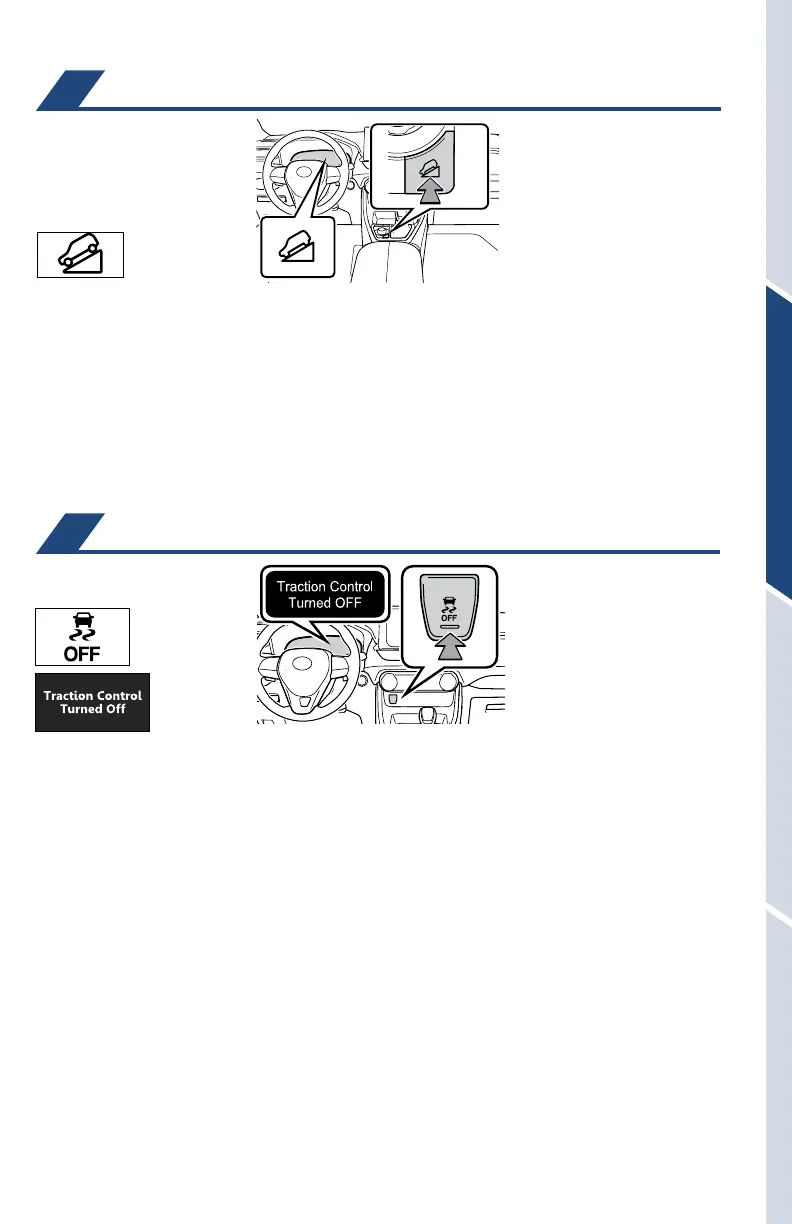 To disable VSC/TRAC/Trailer Sway Control systems, press and hold the switch for at