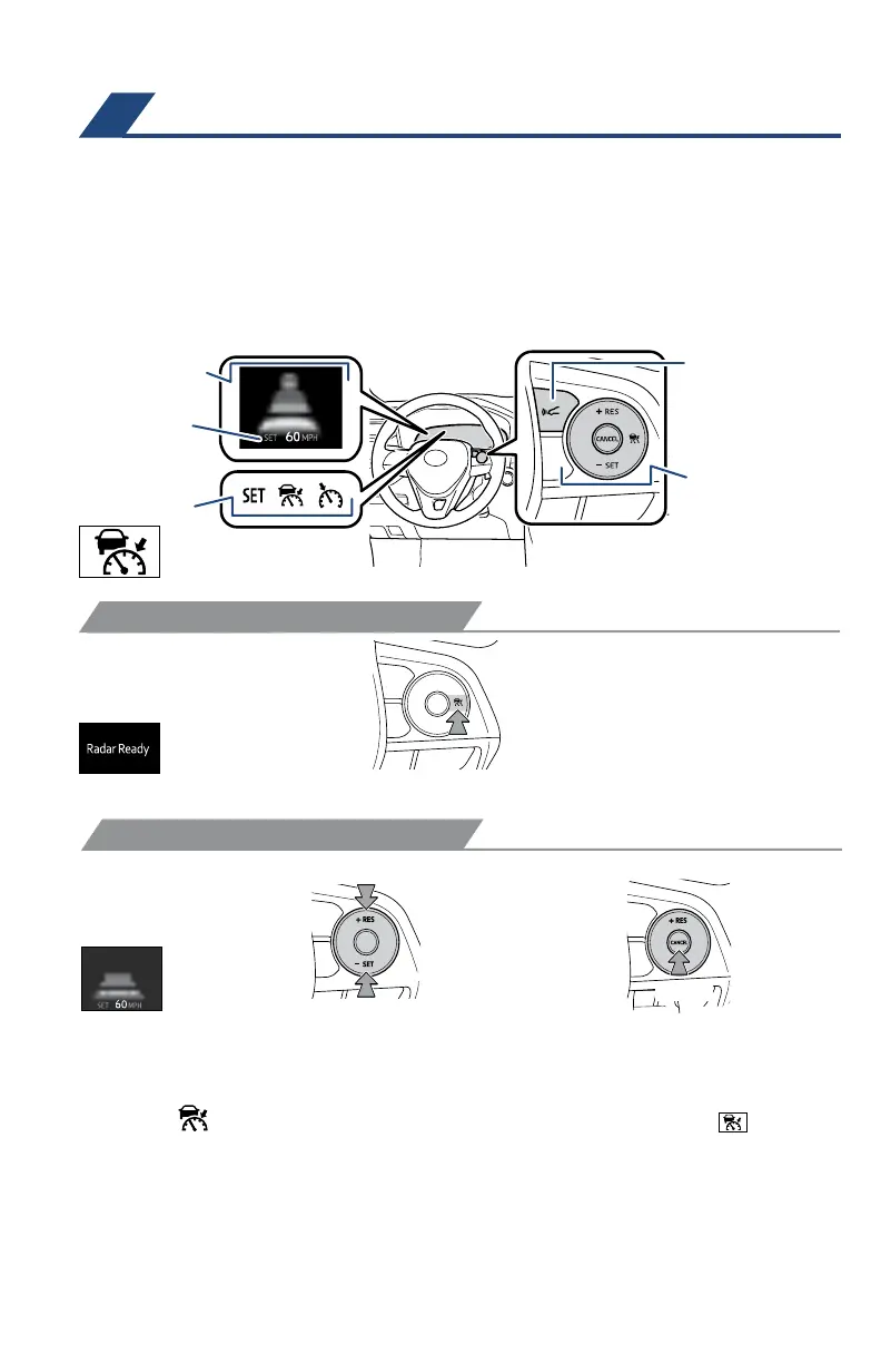 ” to turn DRCC system ON. The “RADAR READY” and “ ” indicator
