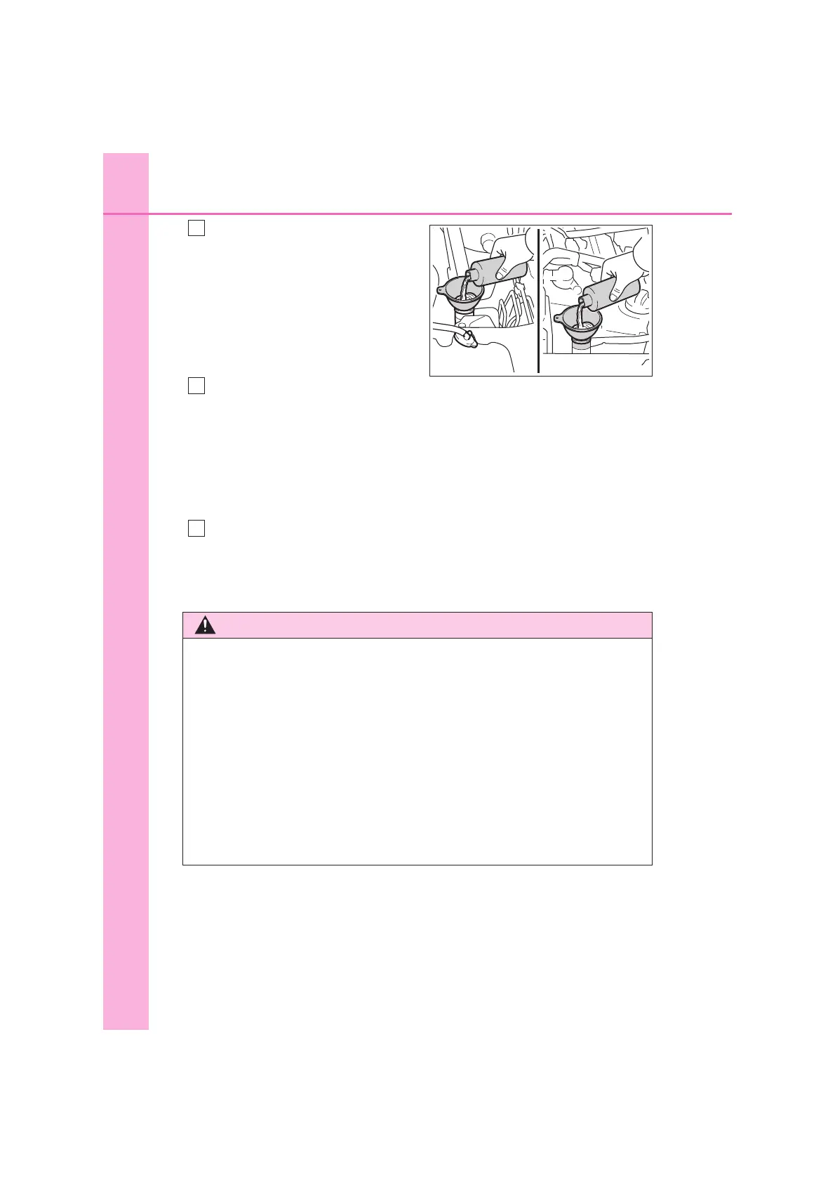 ● Do not loosen the radiator cap and the coolant reservoir cap while the