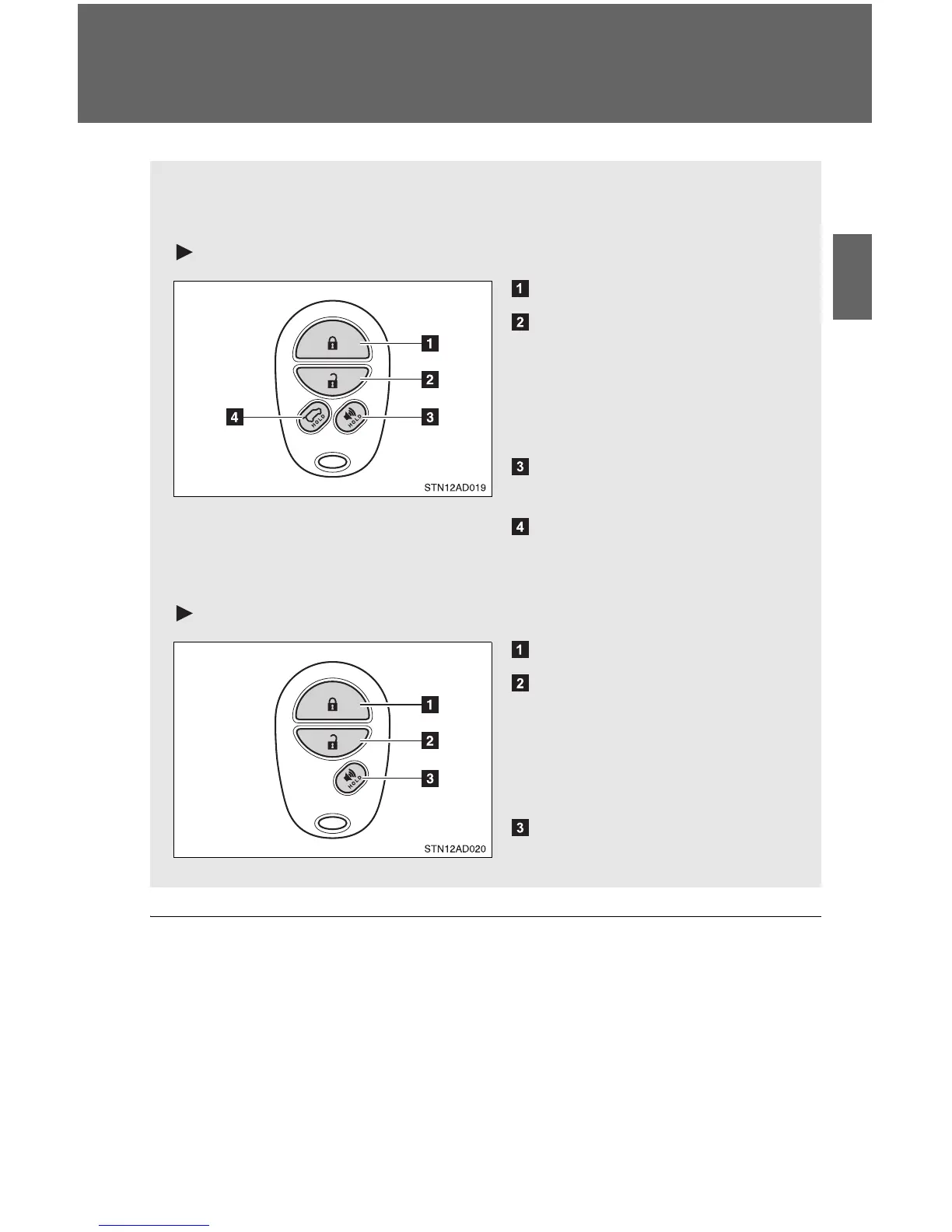 The wireless remote control can be used to lock and unlock the vehi-