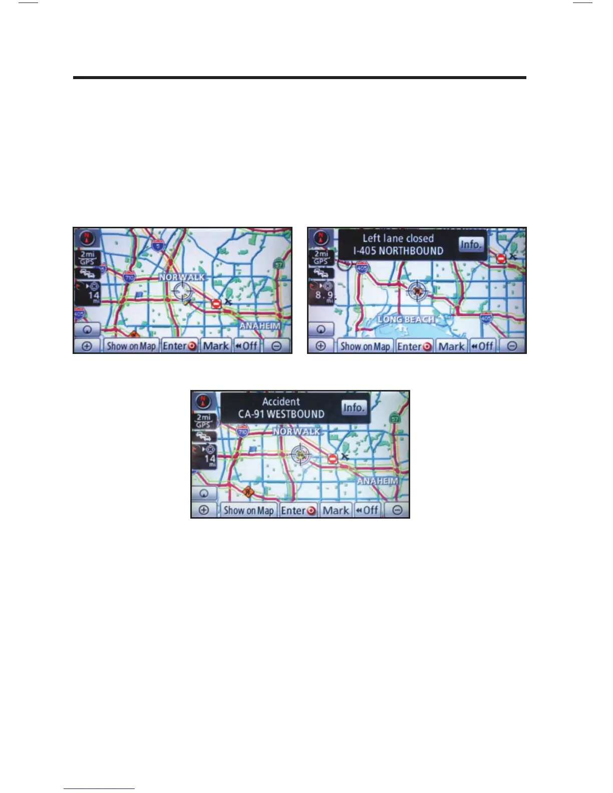 NavTraffi c integrates with your navigation system to display continuously updated traffi c