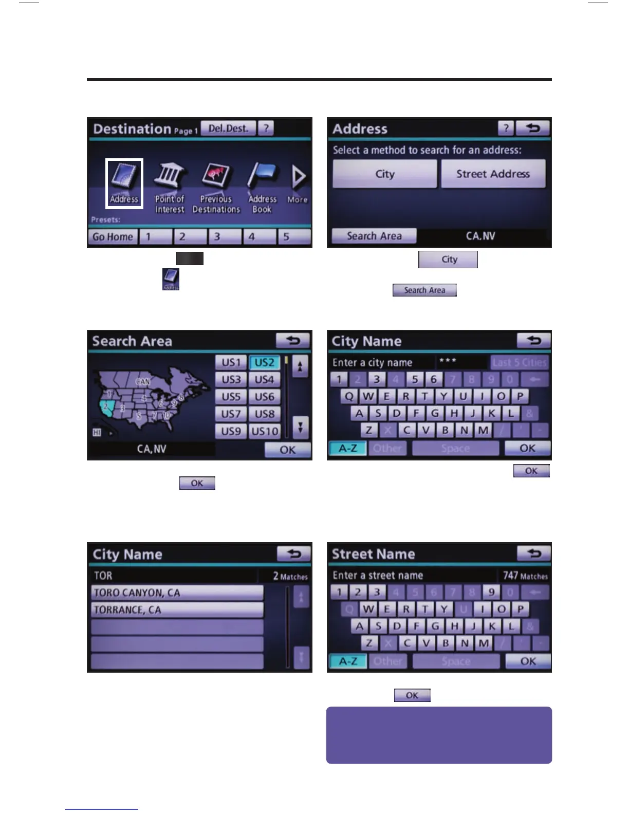 Input the street name and touch