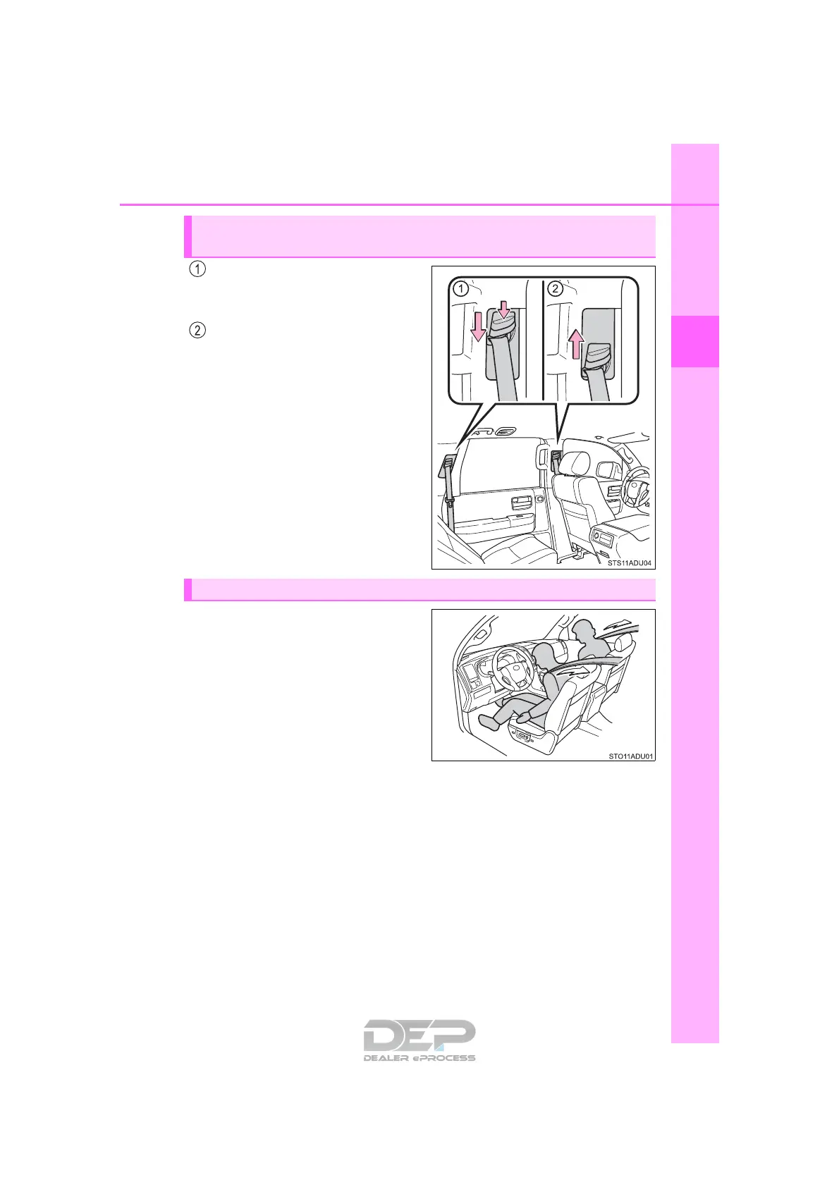 Adjusting the seat belt shoulder anchor height (front and second
