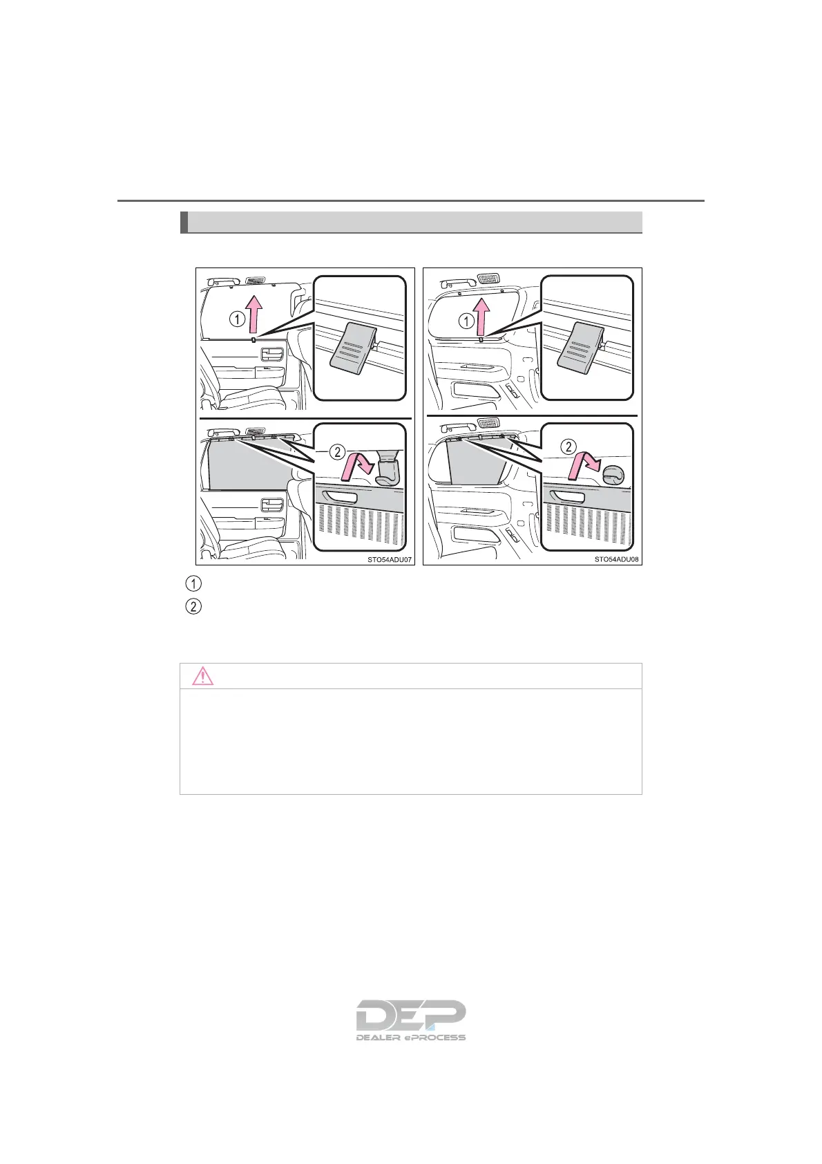 To lower the sunshade, pull the tab slightly to unhook the shade, and lower