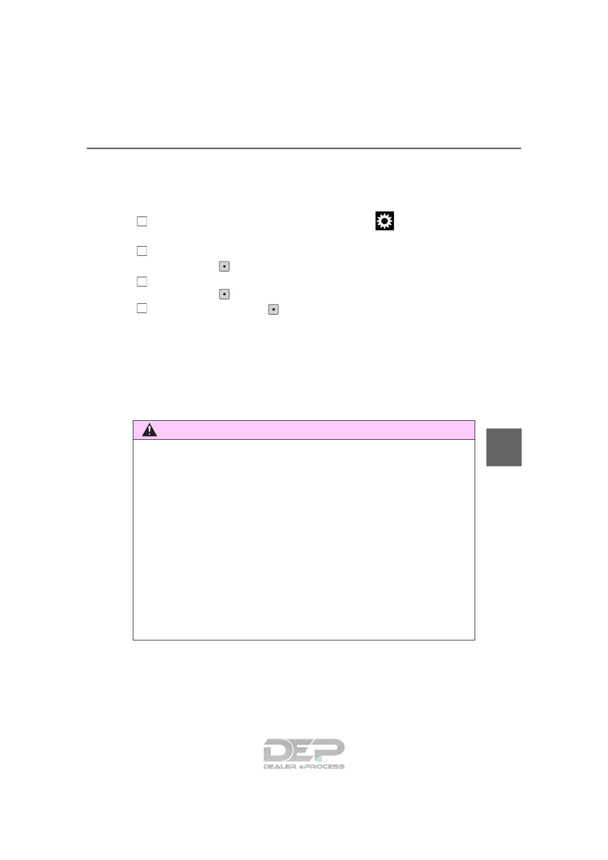 Press “∧” or “∨” of the meter control switches and select “Vehicle Settings”,
