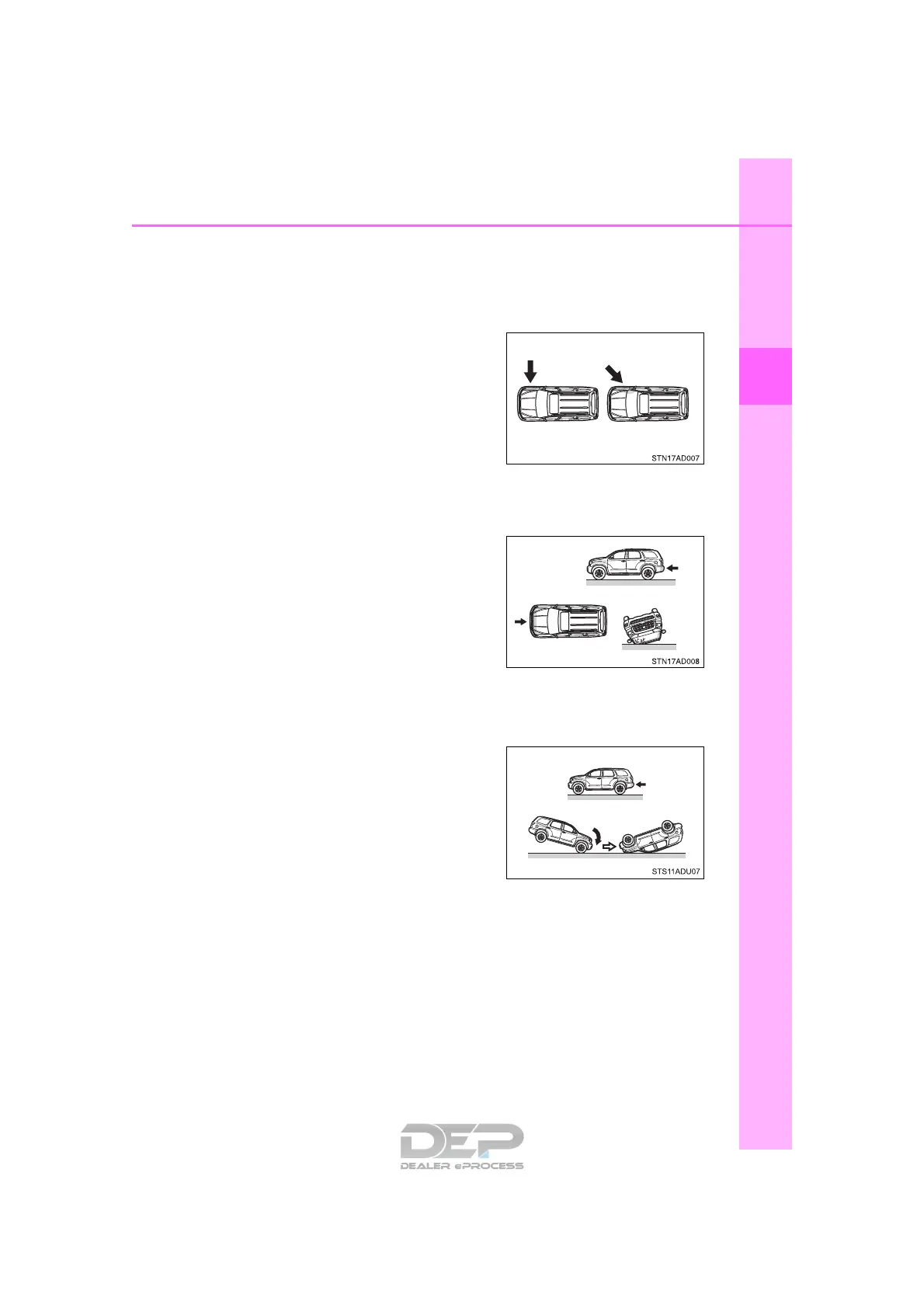 ■ Types of collisions that may not deploy the SRS airbags (SRS side and
