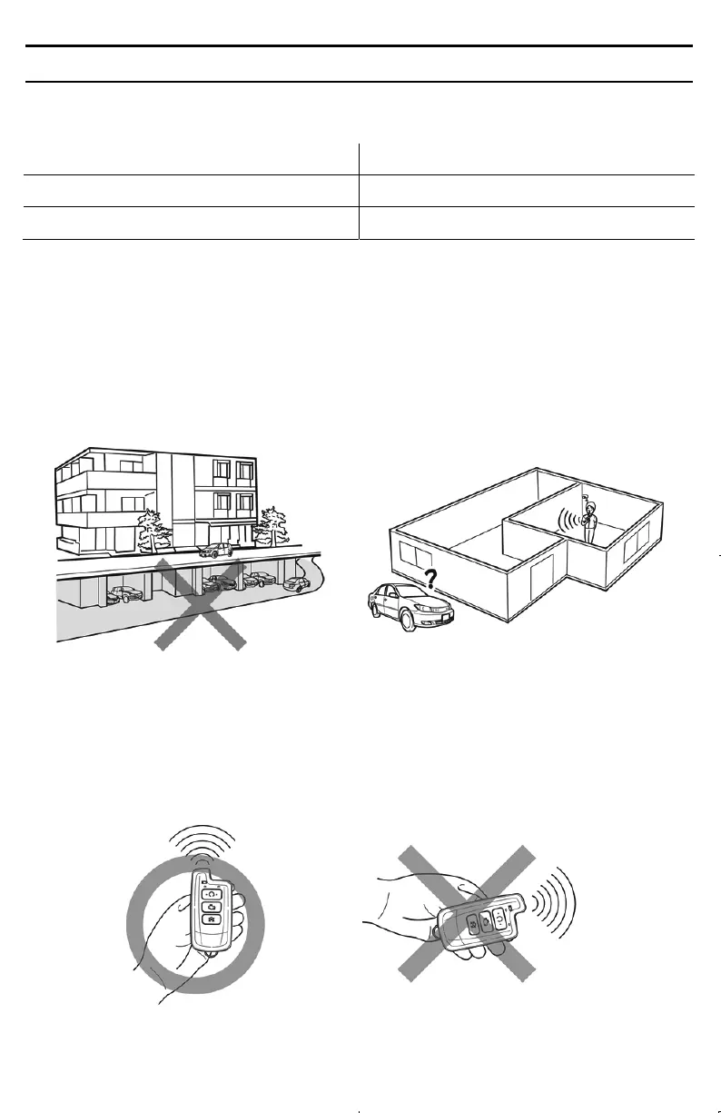 obstructions between you and your vehicle such as walls, trees, other vehicles, etc. These