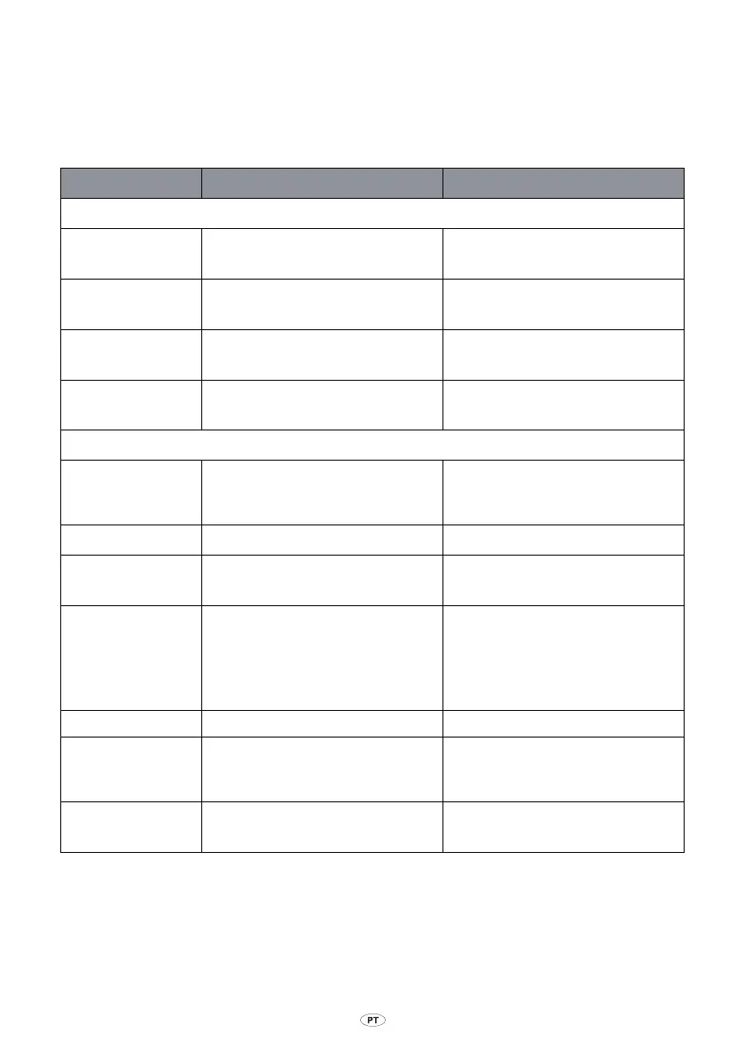 Problema Causas possíveis Soluções possíveis