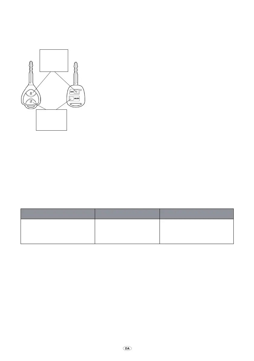 Alarmsystemet aktiveres, når du låser bilen, og deaktiveres, når du låser bilen op med