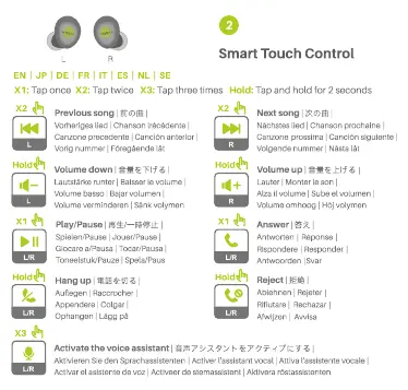 X I: Tap once X2: Tap twice X3: Tap three times Hold: Tap and hold for 2 seconds