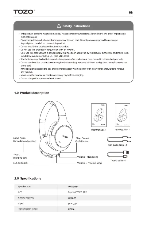 •This product contains magnetsc material. Piease consult doctor as to Whether affect implantable