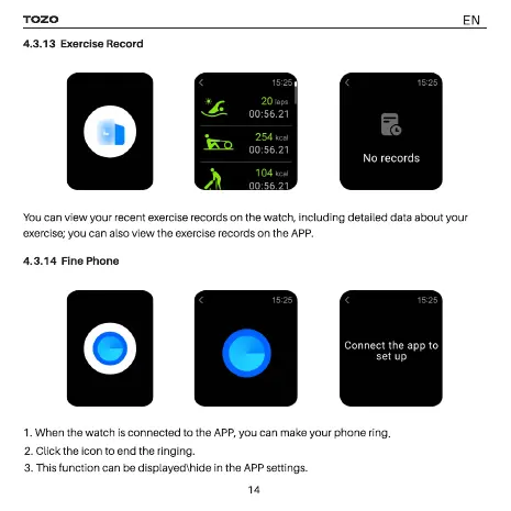 TOZO S2 - 4.3.13 Exercise Record; 4.3.14 Find My Phone