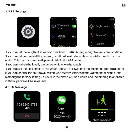 TOZO S2 - 4.3.15 Watch Settings; 4.3.16 Message and Notifications