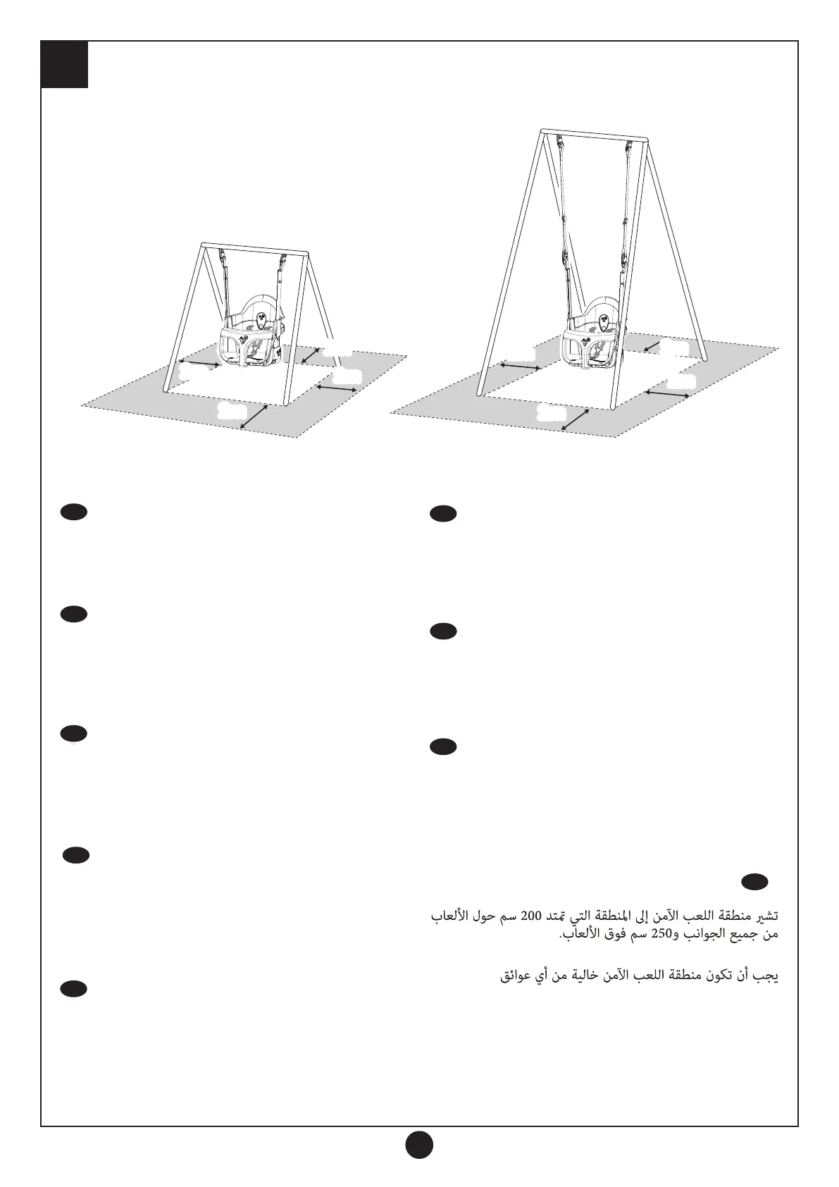 cm su tutti i lati attorno all’insieme da gioco e per 250 cm sopra