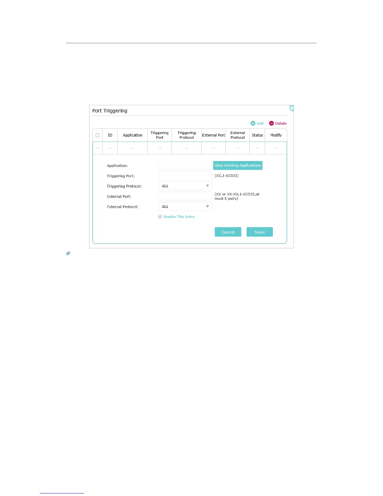 • If the application you need is not listed in the Existing Applications list, please enter the parameters manually. You