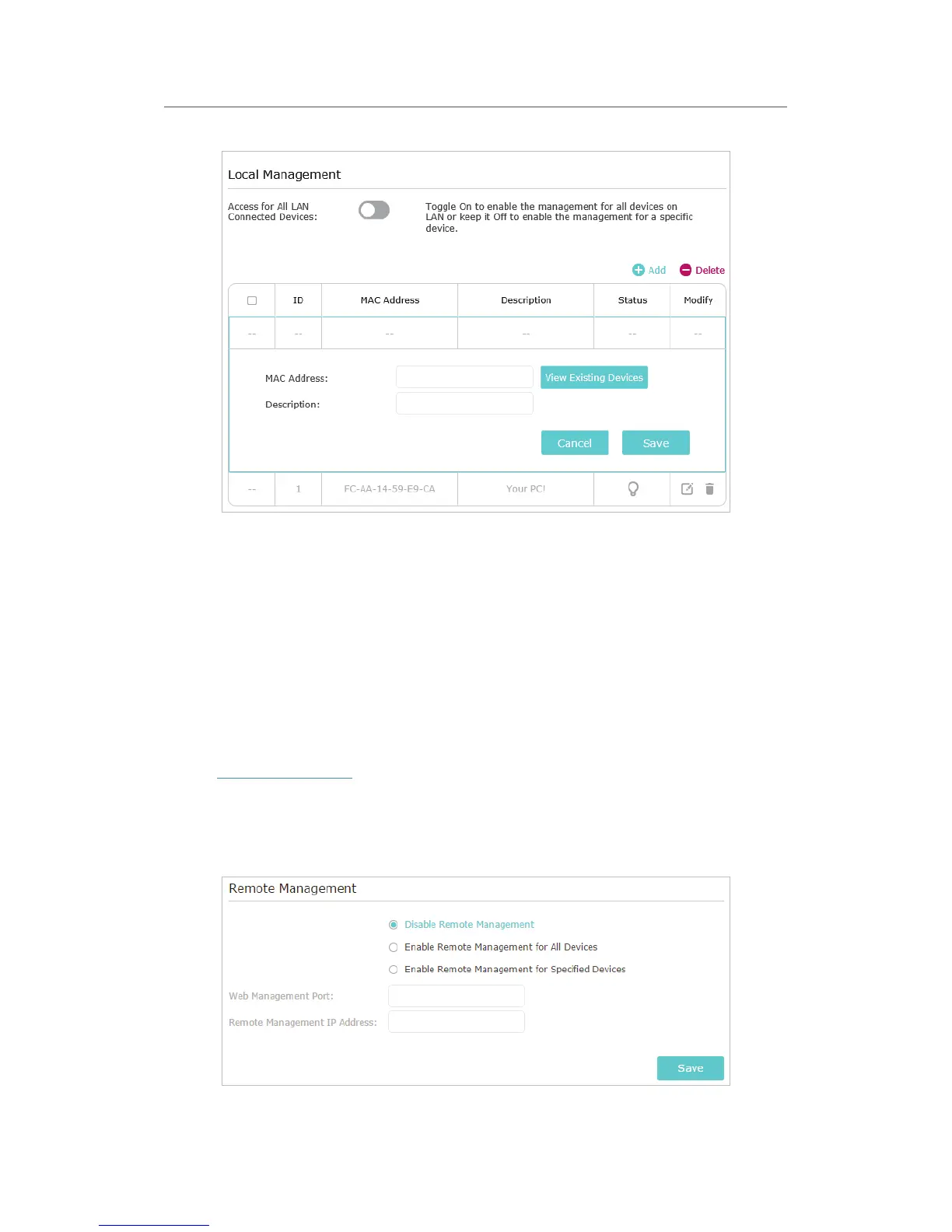 This feature allows you to control remote devices’ authority to manage the router.