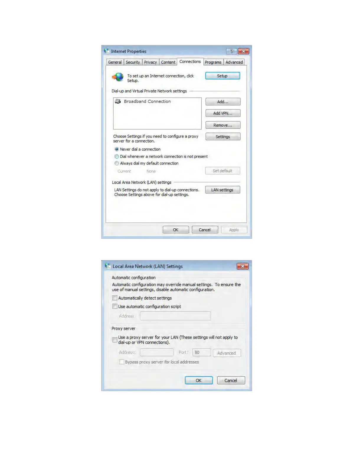 4 ) Click LAN settings and deselect the following three options and click OK.