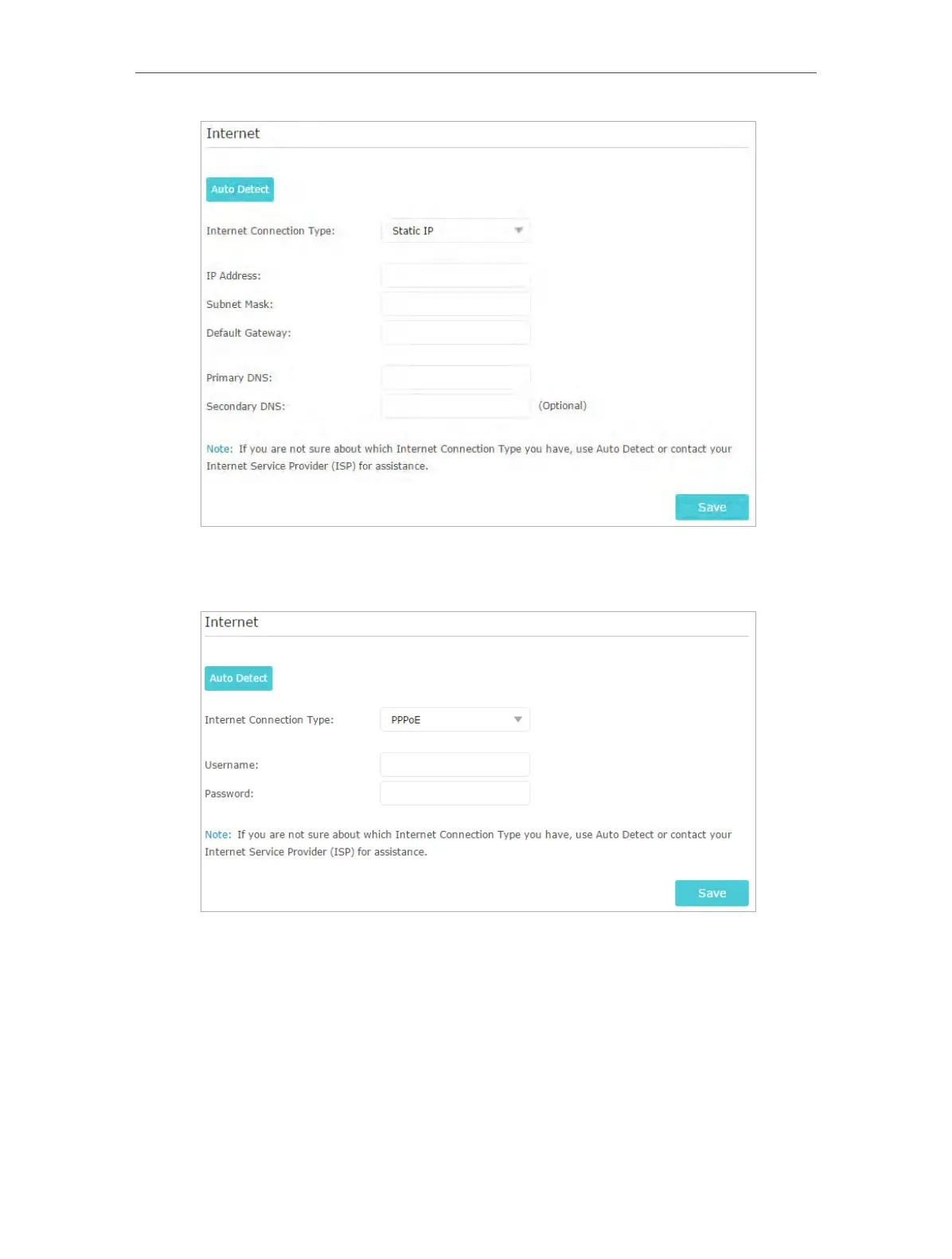 3 ) If you choose PPPoE, enter the username and password provided by your ISP.