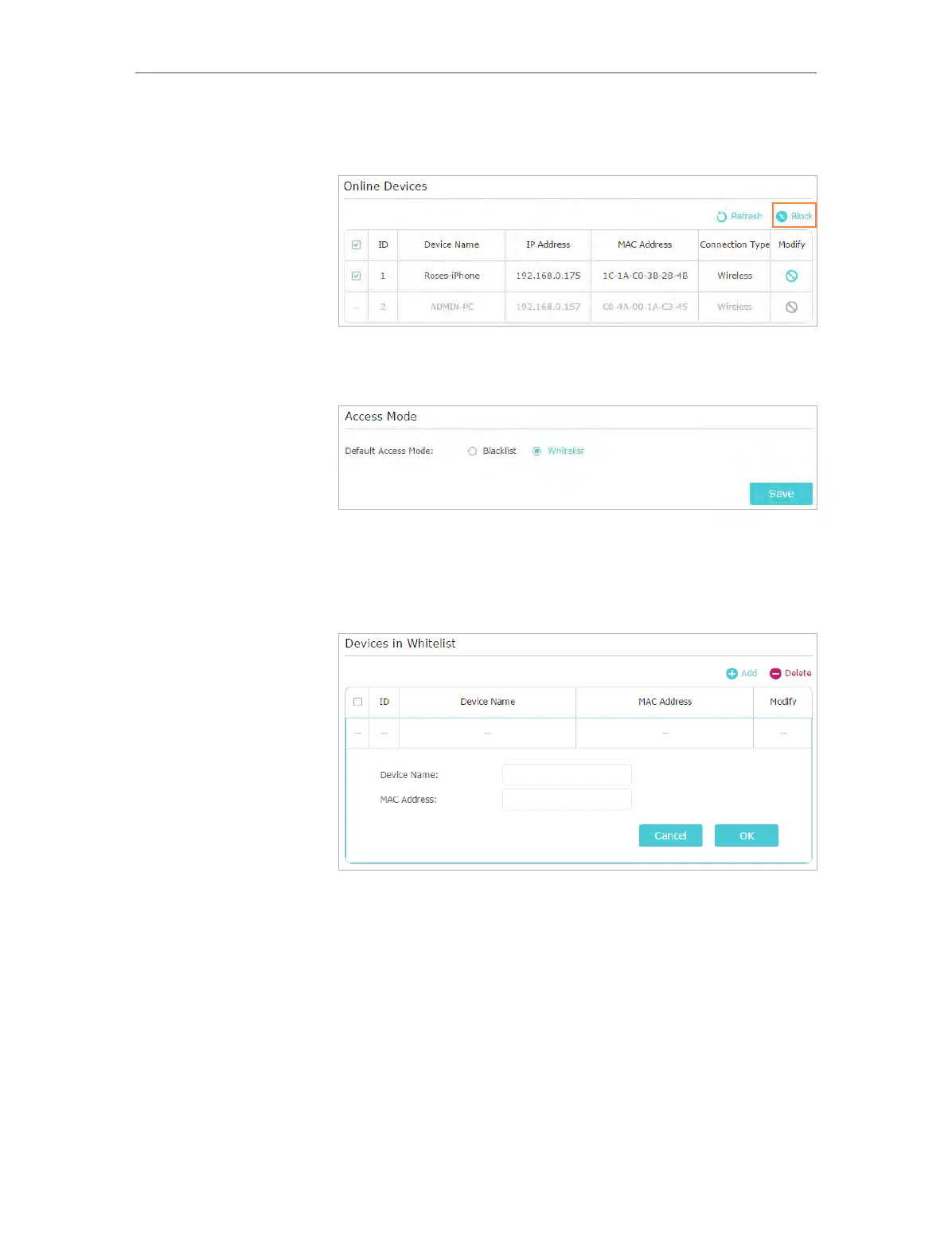 2 ) Click Add in the Devices in Whitelist section. Enter the