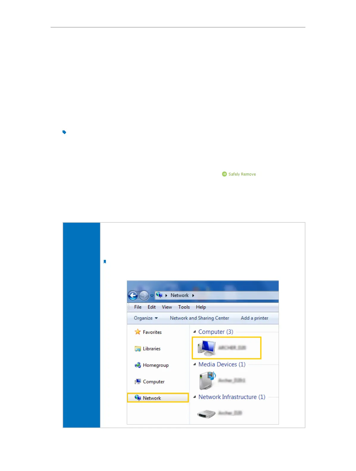 • Before you physically disconnect a USB device from the modem router, safely remove it to avoid data