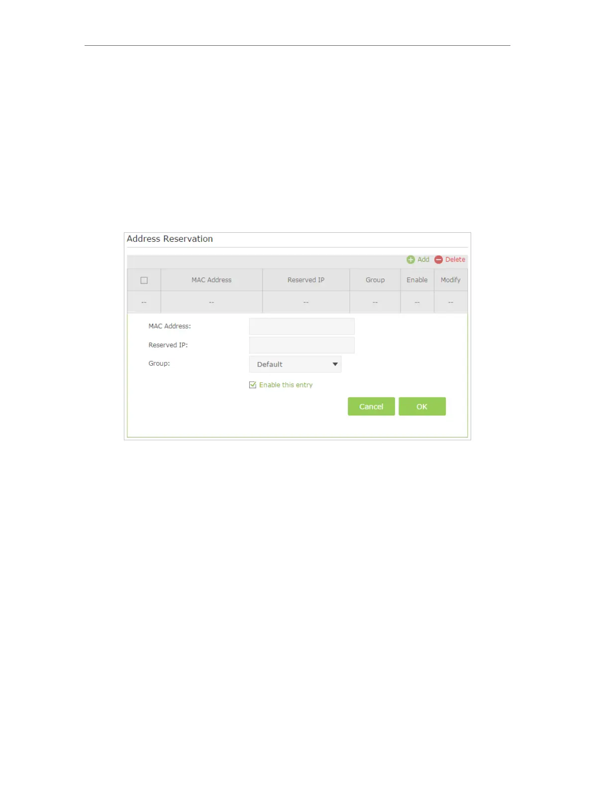 3. Scroll down to locate the Address Reservation table and click Add to add an address