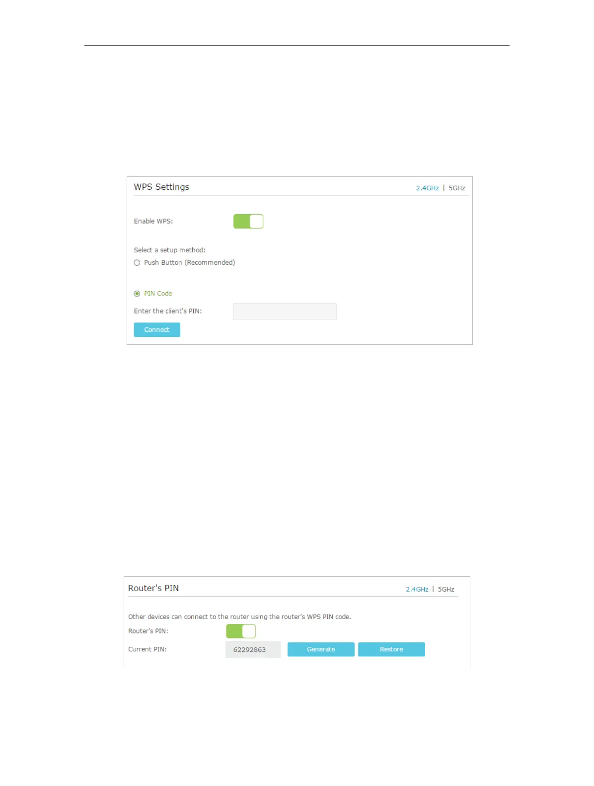 2. Go to Advanced > Wireless >WPS page. Select the wireless network 2.4GHz or 5GHz