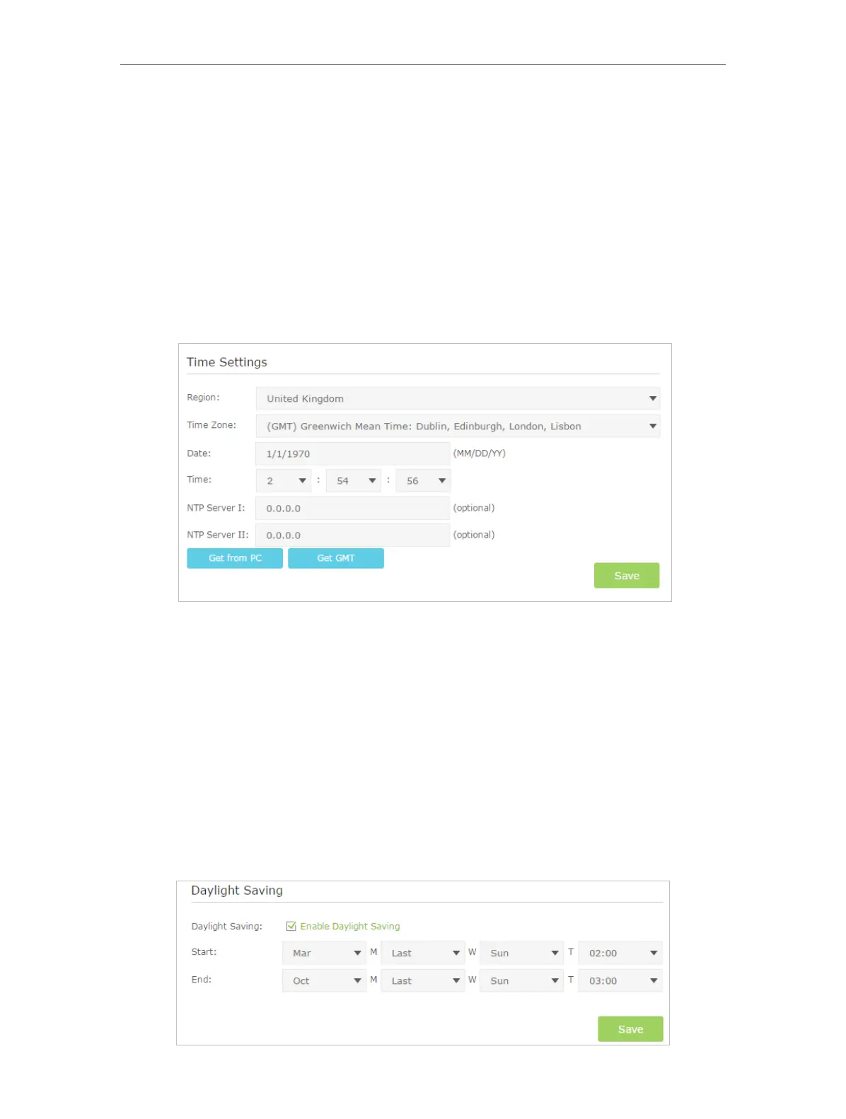 needs. Tick the checkbox to enable Daylight Saving, set the start and end time and