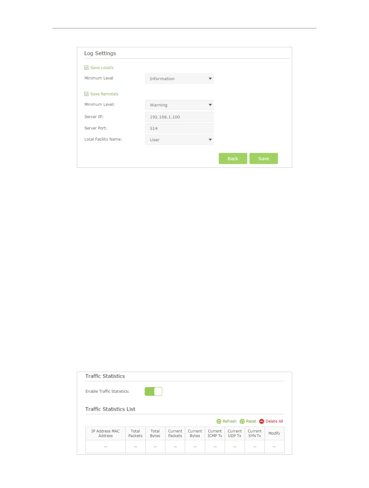 • Save Locally: Select this option to cache the system log to the router’s local memory,