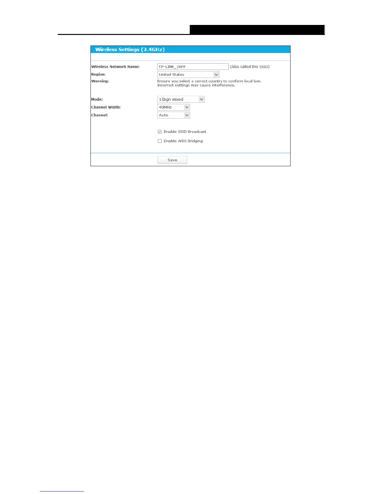 Figure 5-13 Wireless Settings (2.4GHz)