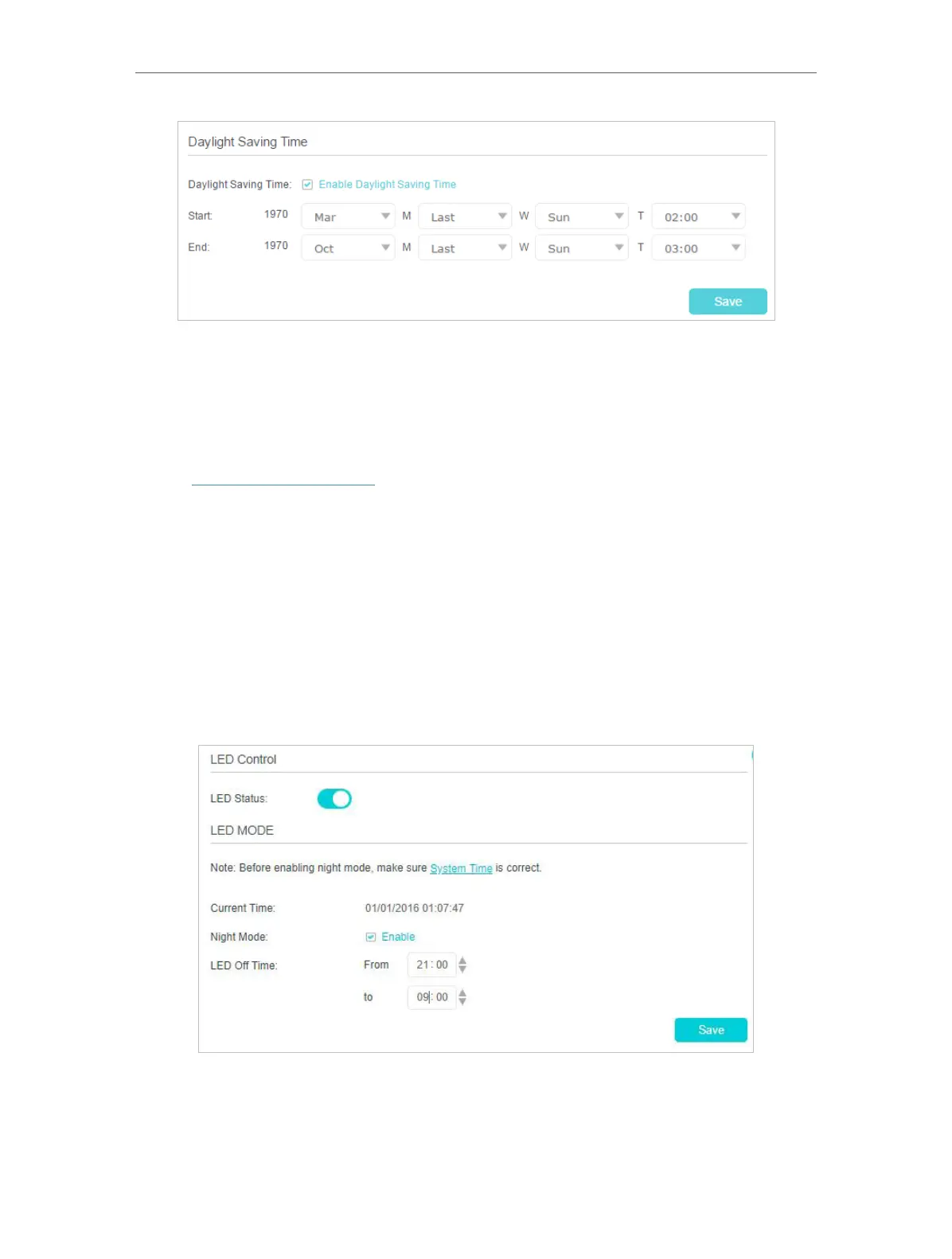 3. Click Save, and then the LEDs will be off during this period.