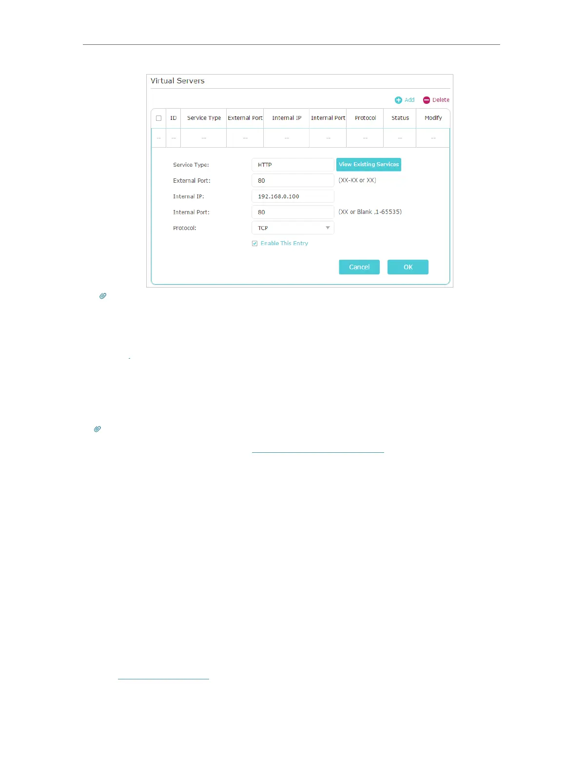 • You can add multiple virtual server rules if you want to provide several services in a router. Please note that the