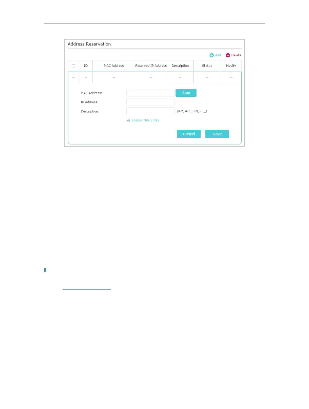 3. Enter the IP address to reserve for the client device.