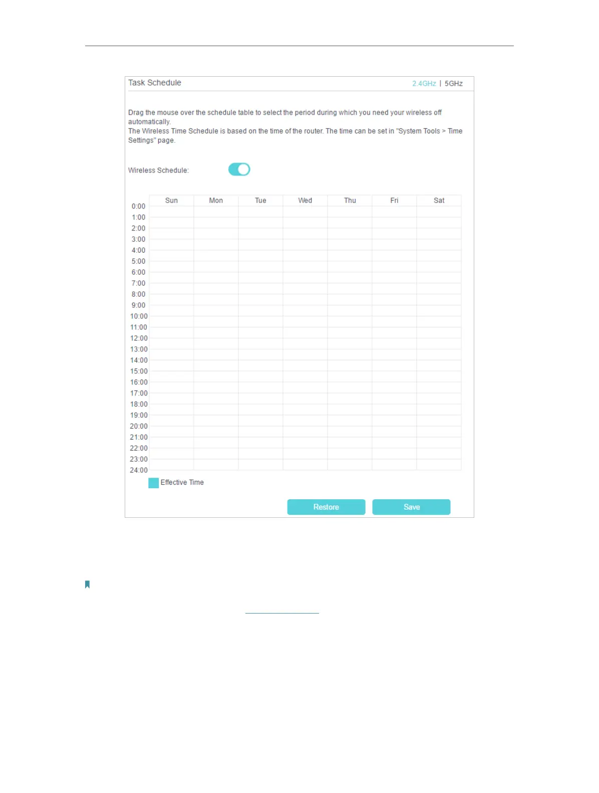 • The Effective Time Schedule is based on the time of the Router. Make sure that the time of the router is correct before