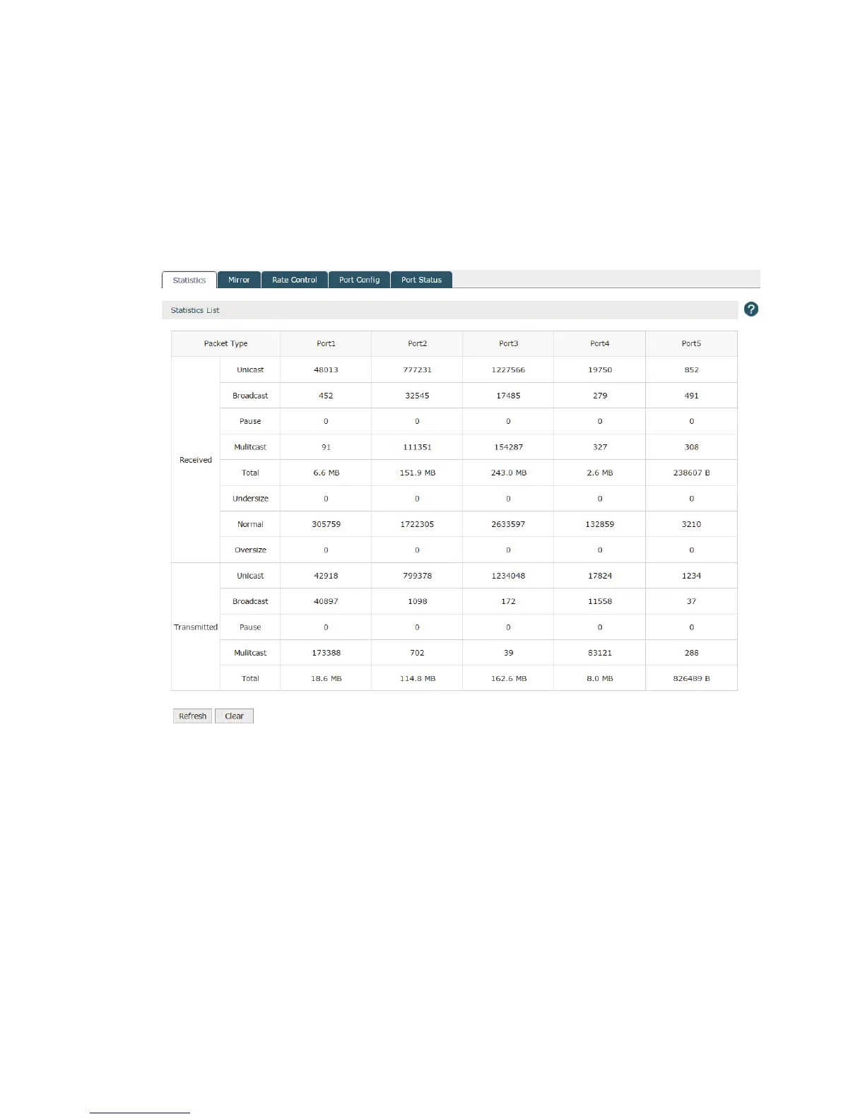 Choose the menu Network > Switch > Statistics to load the following page. The statistics