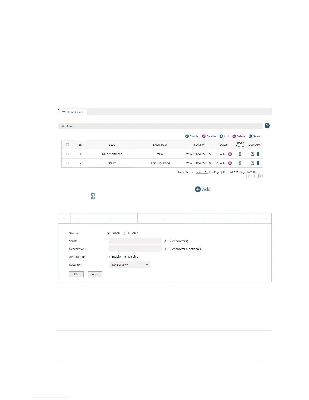 Choose the menu Radio > Wireless > Wireless Service to load the following page.