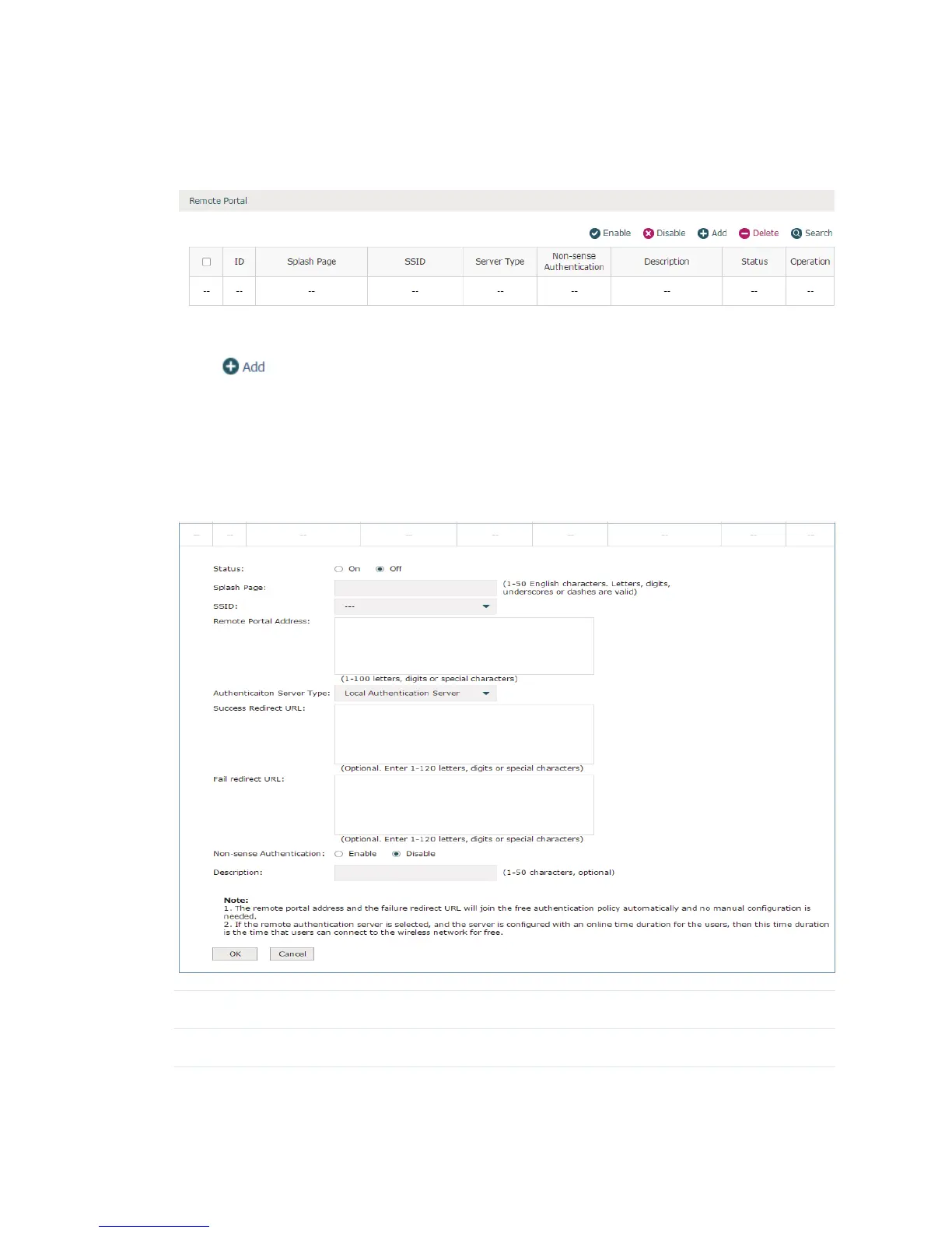 Choose the menu Authentication > Portal Authentication > Remote Portal to load the