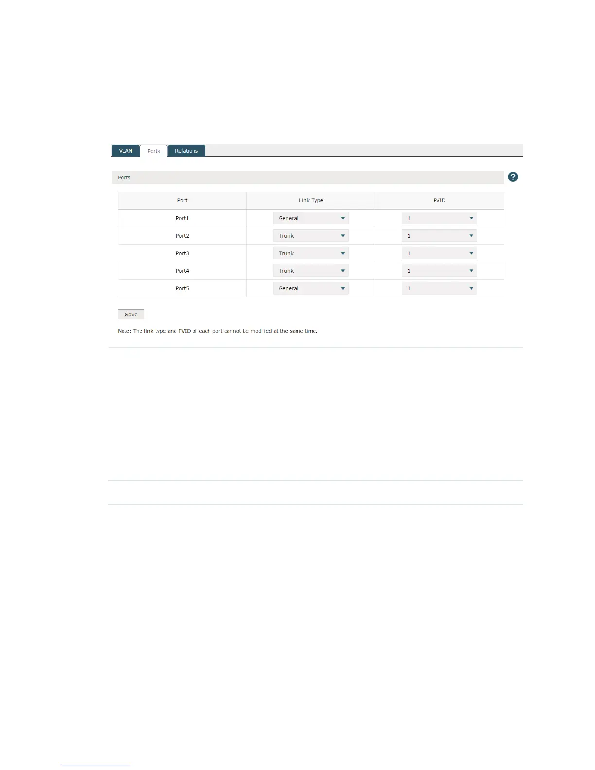 and PVLD for each port. The link type and PVID can not be modified at the same time.
