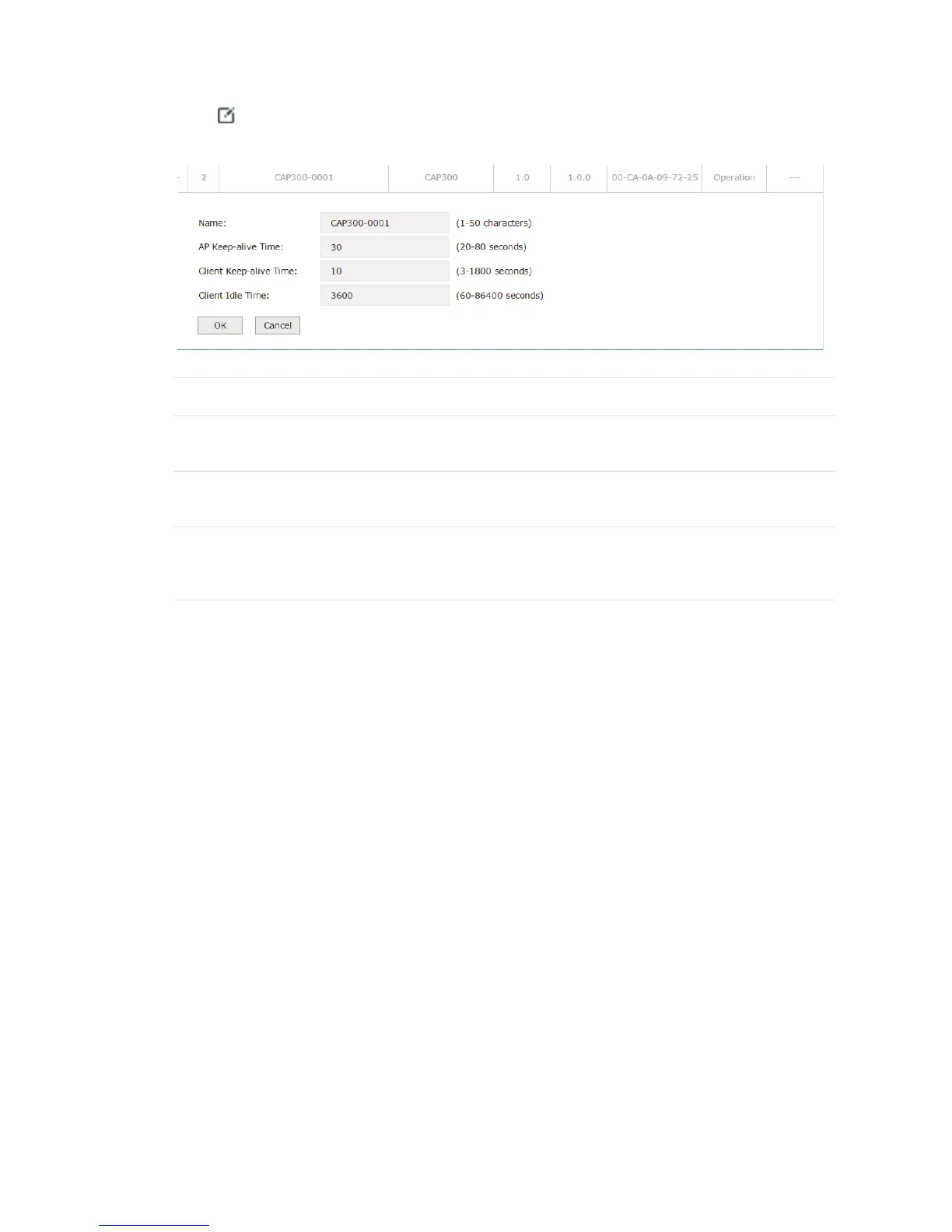 Client Keep-alive Time Specify the time interval for the client sending heartbeat packets to the AP. APs