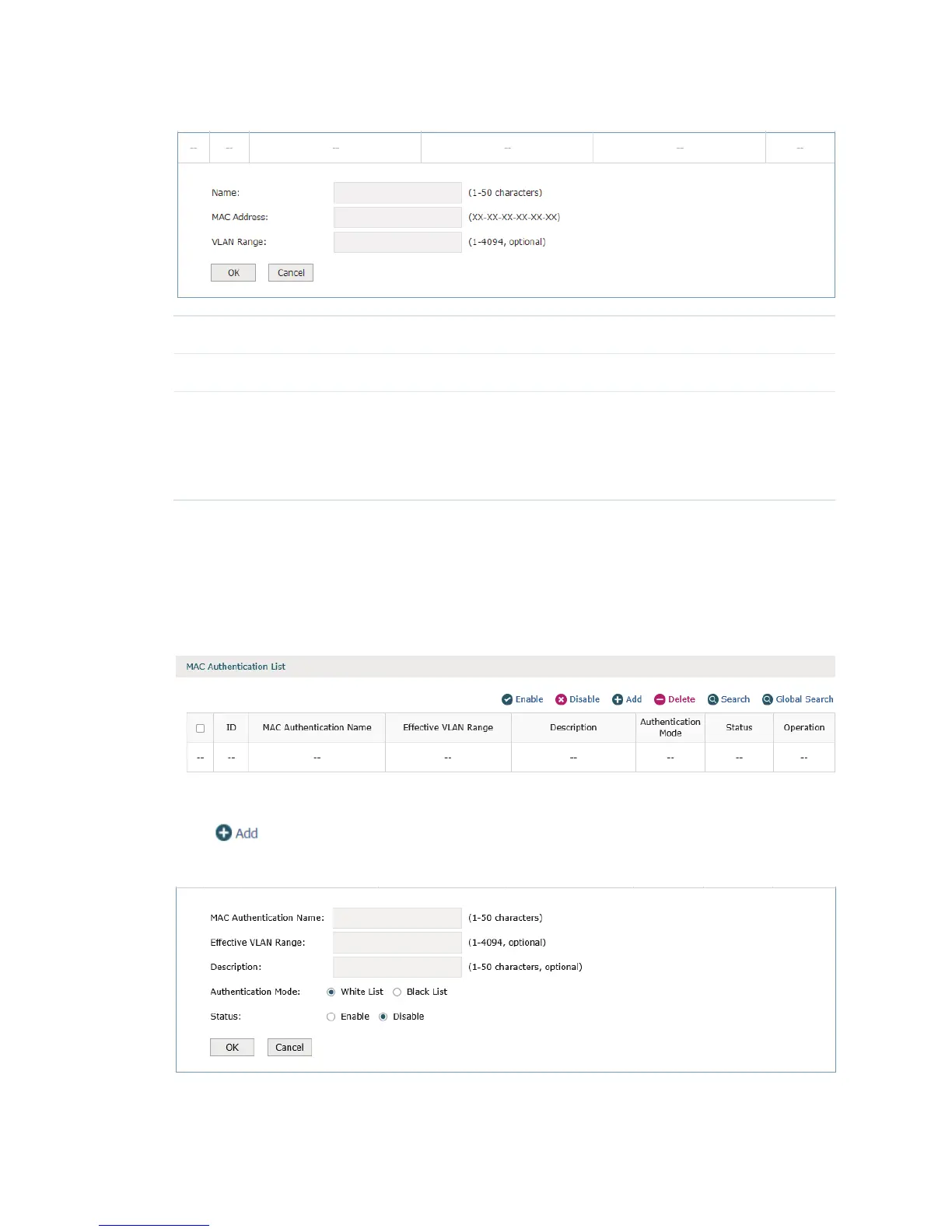 Choose the menu Authentication > MAC Authentication > MAC Authentication to load the