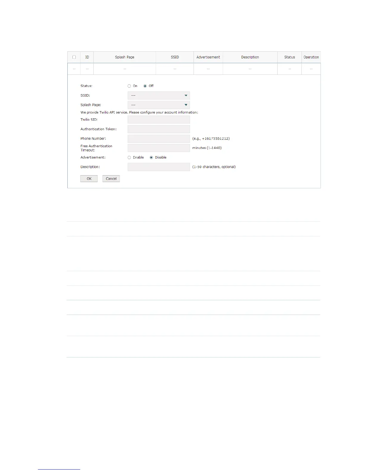 SSID Specify the SSIDs that will be enabled with SMS authentication.