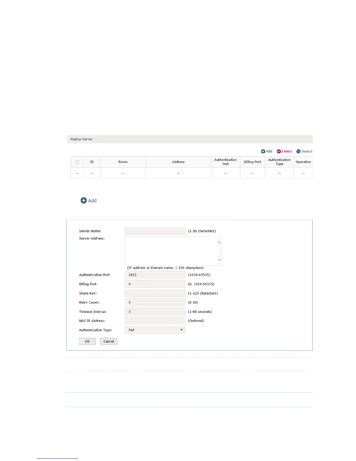 Choose the menu Authentication > Authentication Server > Radius Server to load the