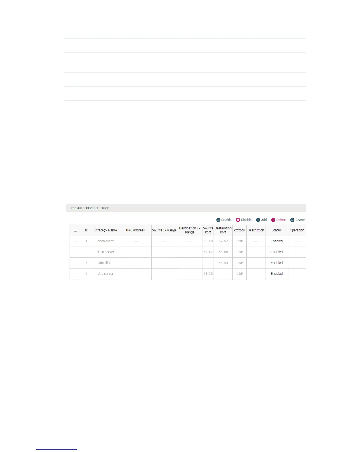 Choose the menu Authentication > Portal Authentication > Free Authentication Policy to