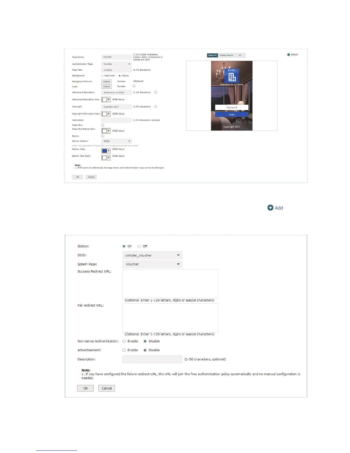 Choose the menu Authentication > Portal Authentication > Voucher. Click