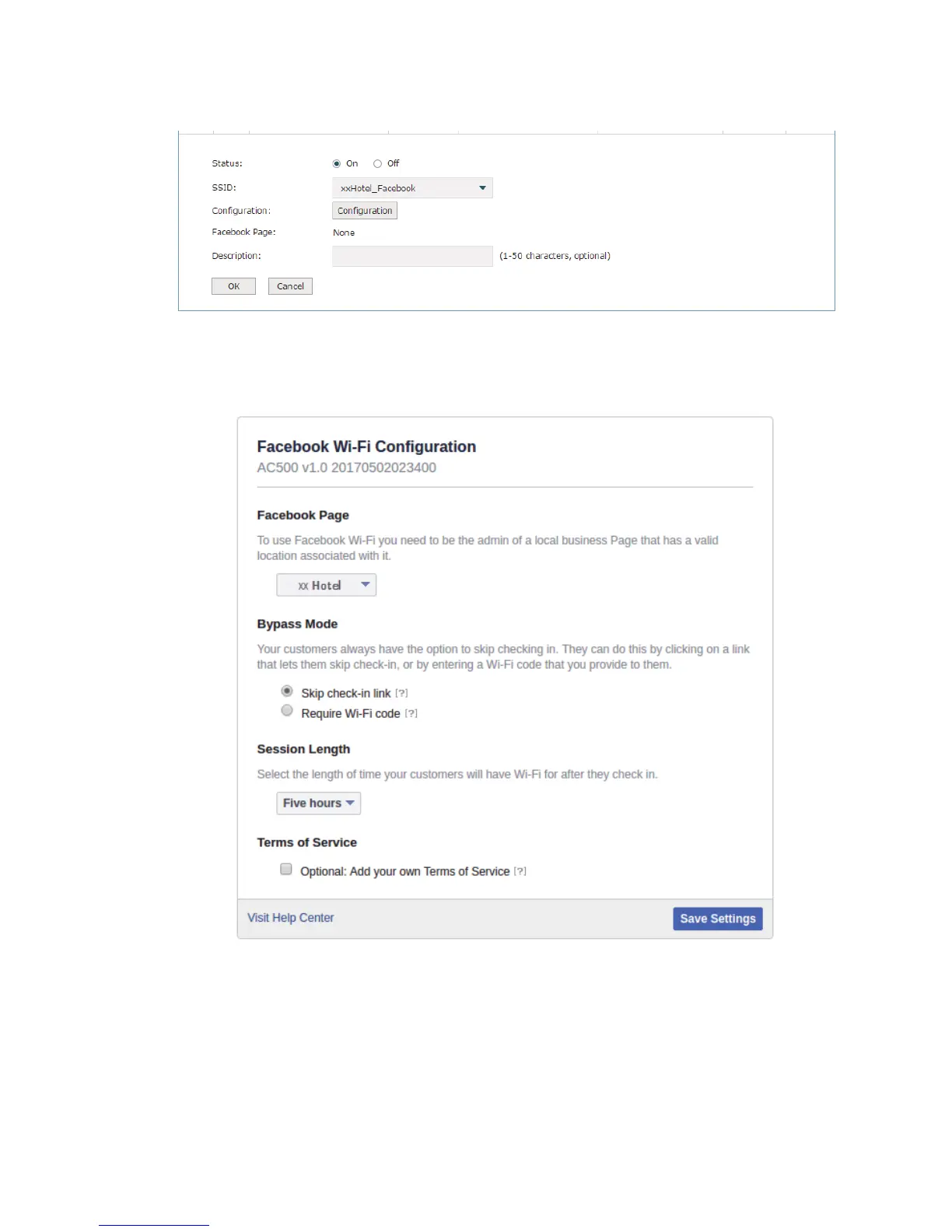Click the Configuration button and specify the Facebook Page and the related parameters.