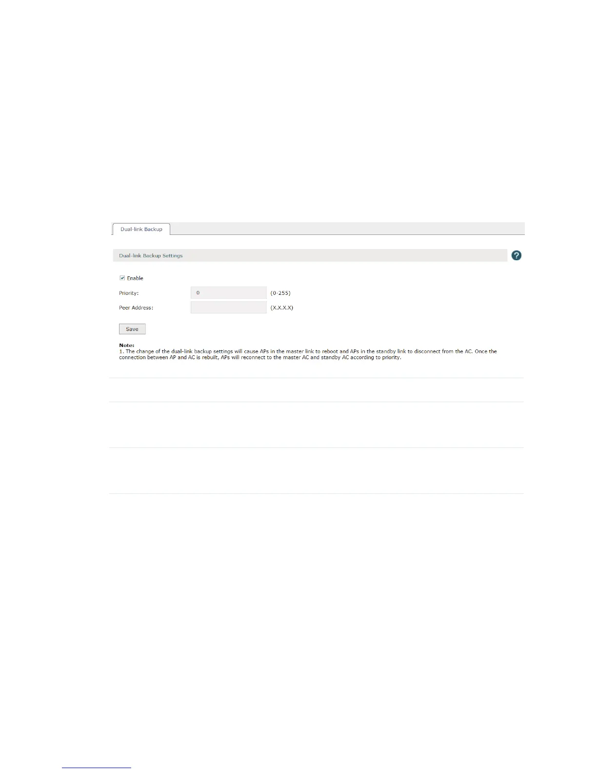 • With the dual-link backup enabled, please ensure the settings of the master AC and standby AC are